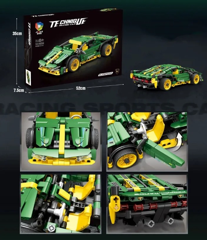 Este increíble coche de carreras 1:14 compatible con Technic ofrece una experiencia única de construcción y juego. Su diseño deportivo incorpora detalles avanzados como puertas de tijera, capó frontal abatible, sistema de retrofricción, llantas deportivas y una estructura altamente realista que imita a los supercars modernos.