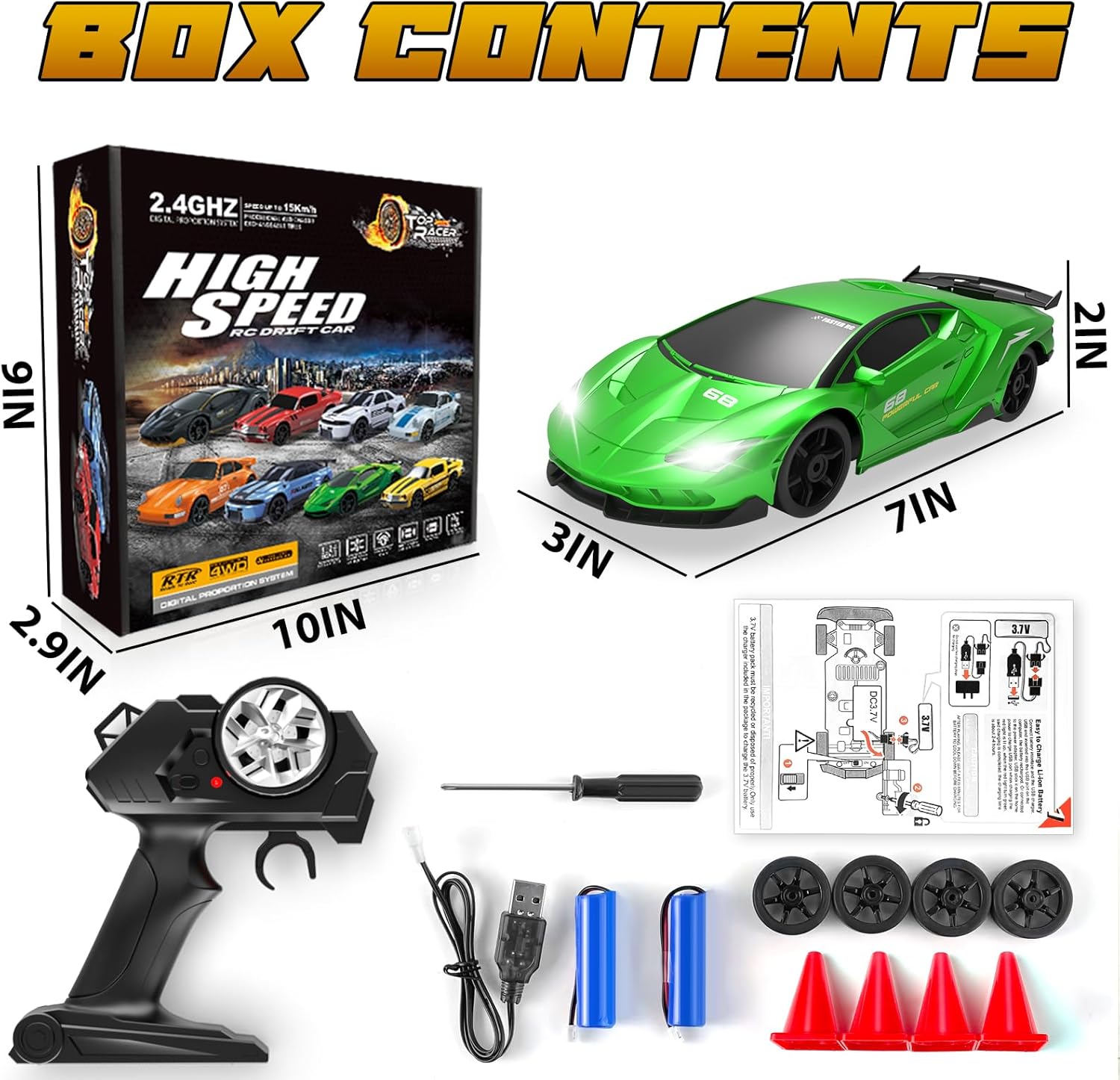 • ✔ Control remoto 2.4GHz sin interferencias para competir con varios coches.