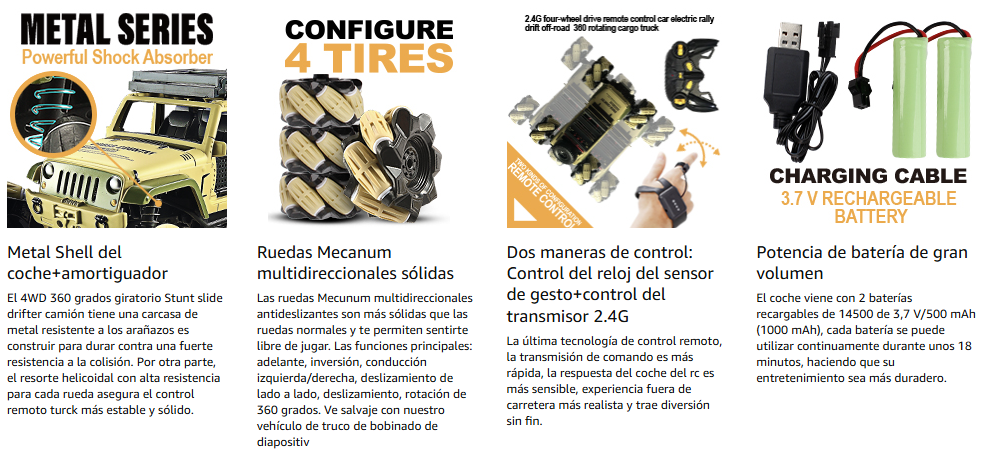 | Movimientos | Giros 360°, Drift lateral, multidireccional |