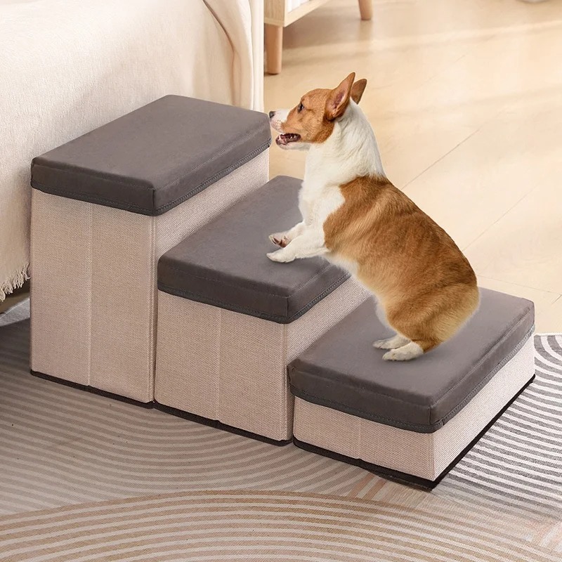La Escalera Plegable 2 en 1 para Mascotas es la solución ideal para perros mayores, cachorros y gatos que necesitan ayuda para subir a camas, sofás o vehículos. Fabricada en algodón de alta calidad, soporta hasta 30 kg y cuenta con un diseño plegable y compacto que ahorra espacio.